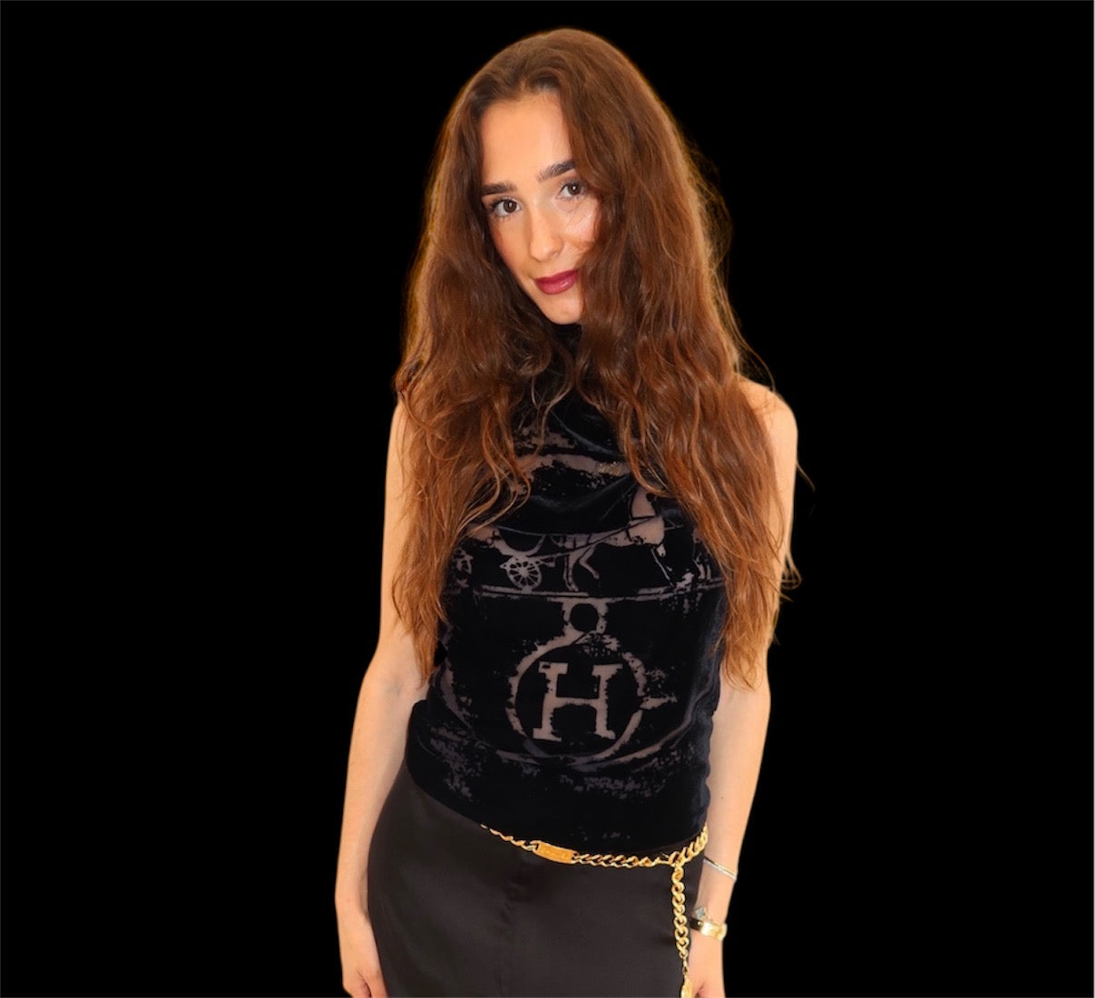 Hermes by Jean Paul Gaultier velour burnt out logo motif top from the early 2000s, extremely hard to come by. -